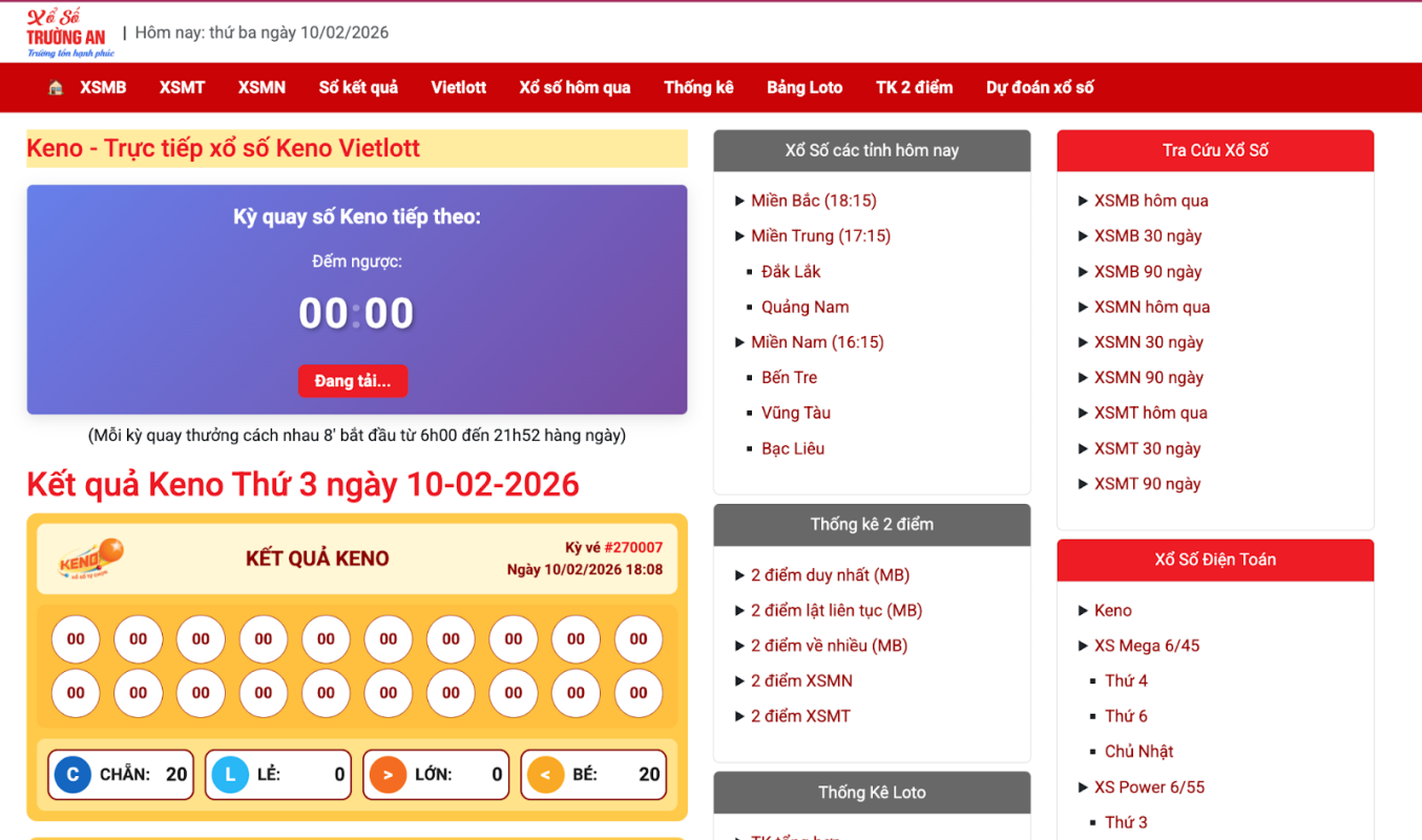 Ngoài xổ số truyền thống, trang còn cung cấp đầy đủ các sản phẩm Vietlott như Mega 6/45, Power 6/55, Max 3D, Max 3D Pro, Keno… giúp người xem tra cứu tất cả trên cùng một nền tảng.